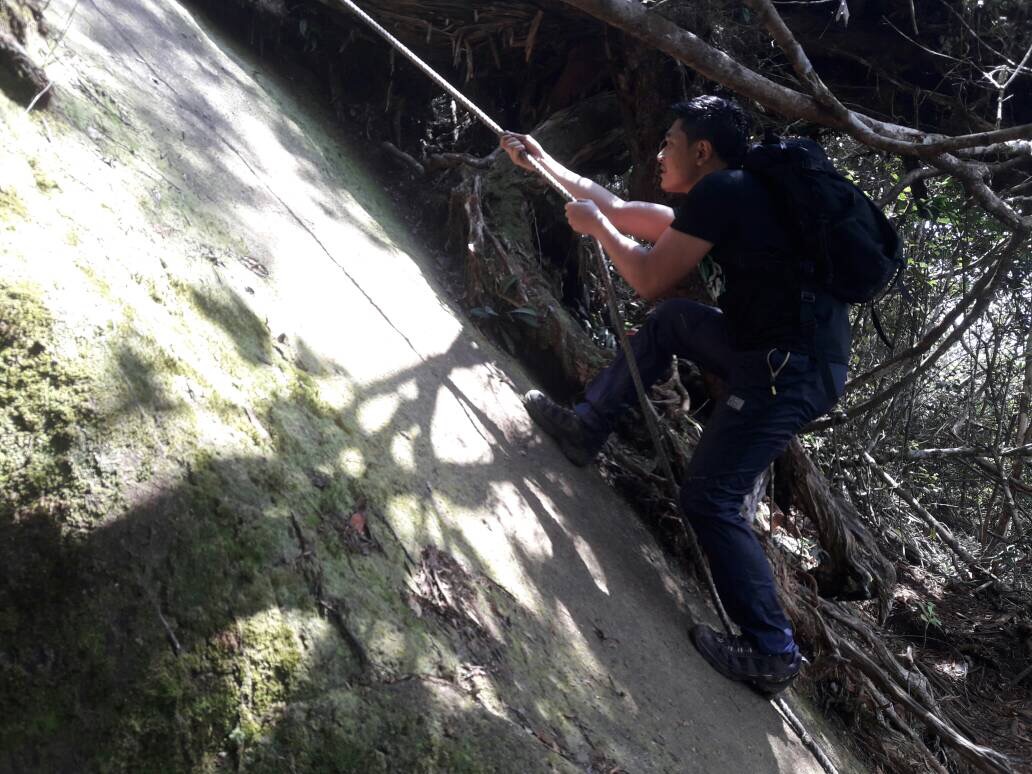 Saya amat sarankan anda semua bawa bersama gloves tangan. Ini adalah untuk memudahkan grip anda semasa mendaki dan prevent from getting hurt guys. For this climb, it was a bit of high. But, once you reach the top, the view was worth the climb.